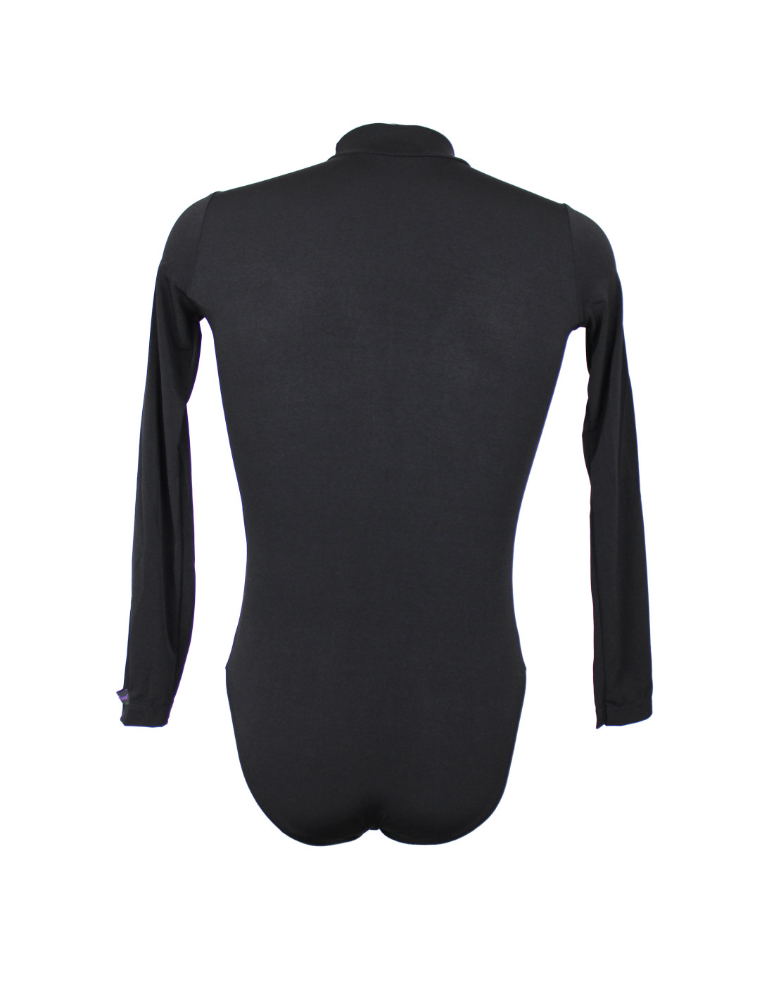 The Ready4Dance dance bodysuit for boys and kids is the perfect choice for comfort, elegance, and performance. Made from breathable technical fabric, this boys dance bodysuit ensures maximum freedom of movement during classes, competitions, and performances. The high neck design adds a refined touch, making it ideal for ballroom dancing, standard, and Latin styles. The 3-button closure at the bottom provides practicality and a secure fit. This Made in Italy dance bodysuit guarantees high-quality craftsmanship and durability, maintaining its shape and elasticity even after multiple washes. Available in sizes from 6 to 16 years, it is designed to support every young dancer in their artistic journey.' turtleneck bodysuit in soft, light stretch fabric with convenient three-button opening.