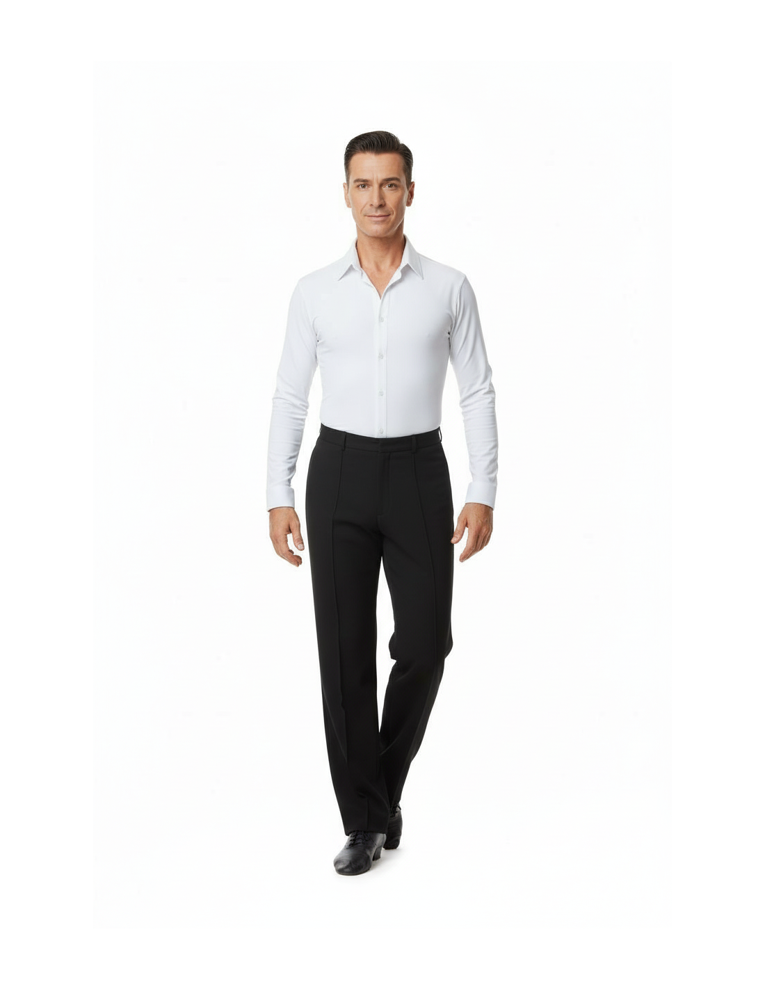 Men’s bodysuit shirt for ballroom, standard and Latin dance, featuring a slim fit cut that enhances the silhouette while ensuring a clean and elegant look during competitions, training sessions and performances. Available in white and black, in sizes from S to 4XL.