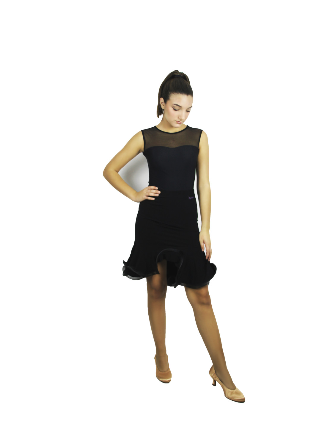Gonna da ballo latino per bambine e ragazze dai 8 ai 16 anni, con vita alta e baschina modellante che valorizzano la figura e garantiscono libertà nei movimenti. Ideale per lezioni, allenamenti e competizioni.