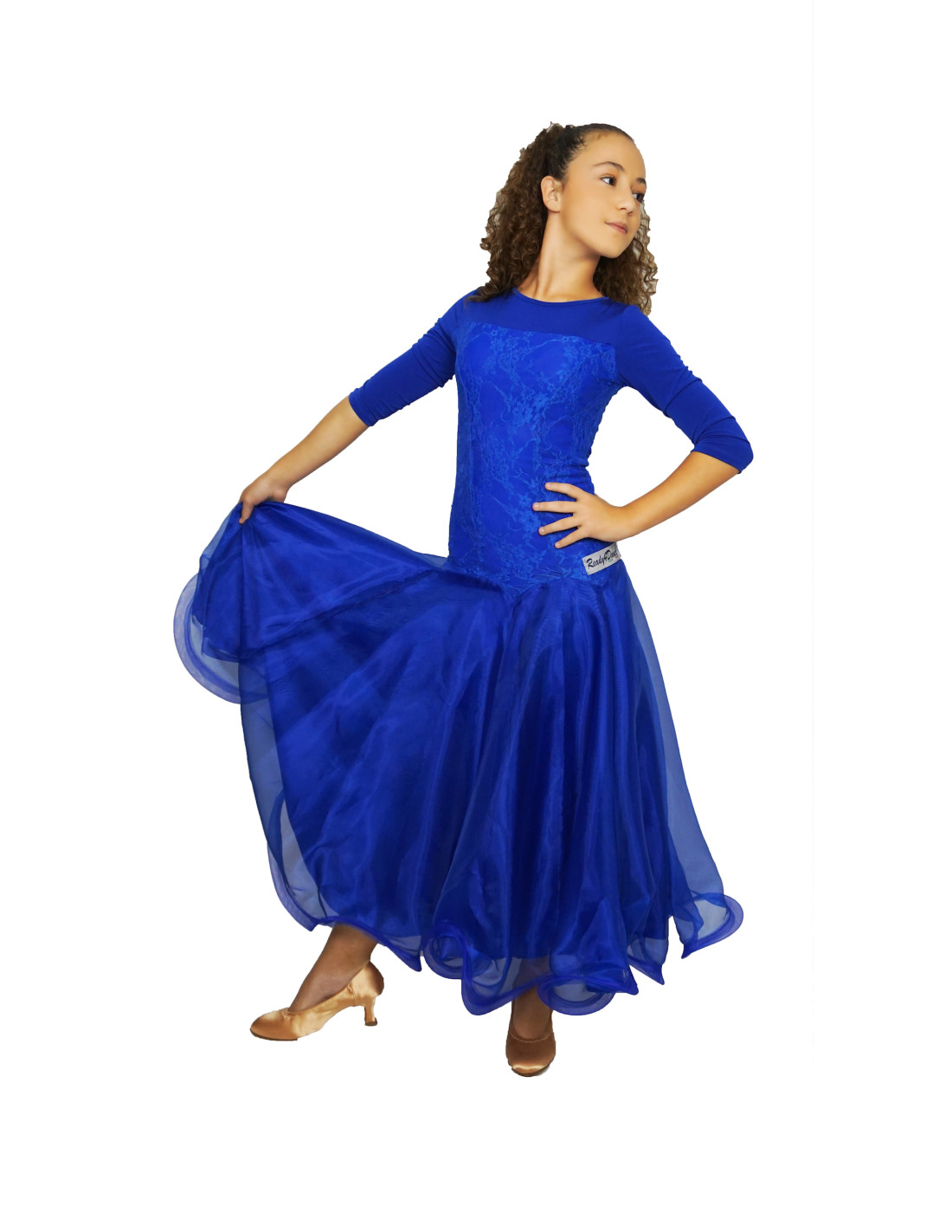 Abito bambina da standard, realizzato in morbidi e confortevoli tessuti, il busto è in pizzo, la gonna composta da ampi spicchi di organza con crinolina doppia inserita nell'orlo, all'interno inserito nel taglio dello sprone c'è il body per garantire una maggiore comodità e libertà nei movimenti. Disponibile nei colori 04 rosso e 26 royal, nelle taglie L/12 anni, XL/14 anni.